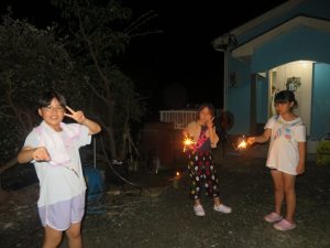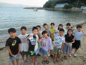 高学年はグループ会社所有のBlue×Greenに泊まりました。夕飯の準備も自分達で行い、夜には花火をしました。2日目は海岸で貝拾いをし、それをデコレーションし自分だけの写真立てを作りました。長崎の中華街に行き観光を楽しみました。