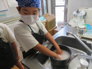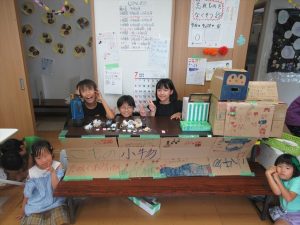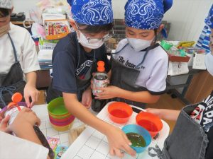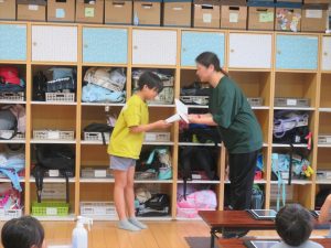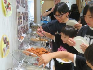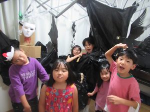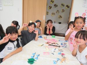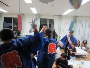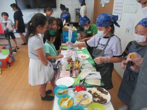 8月22日はキッズフェスタを行いました。夏休み中に高学年中心で内容を決め、看板や小物の製作をしました。当日はお店屋さんとお客さんに分かれて行いました。いらっしゃいませ~!と大きな声が飛び交う中スタート。かき氷やパンケーキを食べ、ゲームやお化け屋敷を楽しみました。片付けも最後まで協力して行い、夏休み最後、いい経験、思い出になった1日でした。