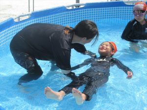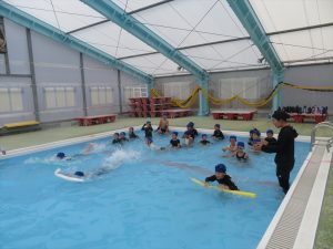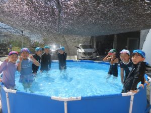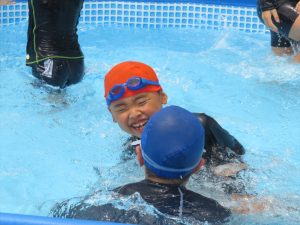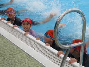 8月5日はみんなの宿題が終わったご褒美イベントとして星野村B&G海洋センターに行きました。低学年と高学年に分かれて、小プールではゲームを行い、大プールでは泳いで体を思い切り動かしました。キュリオで入るプールとはまた違う楽しみ方があり、大満足な1日になりました。