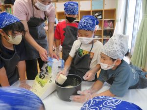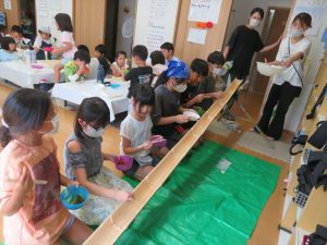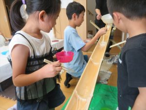 8月18日はキュリオで流しそうめんを行いました。外の気温が高かったため室内での開催となりました。初めて経験する子も多く楽しかった、またしたいとの声が多く上がっていました。