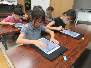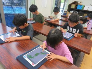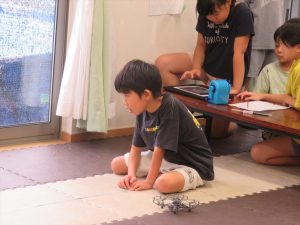 夏休みに入るとすぐ、子ども達は宿題に取り掛かり、たくさんの宿題を苦戦しながらも頑張って終わらせています。宿題が終わった子から、キュリオではプールやタブレット、ドローンをして楽しい時間を過ごしました。