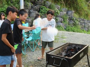 7月26日は少しでも早く宿題を終わらせる為、土曜日でしたが1日開室致しました。宿題や活動の後、夕方からはみんなで焼きそばを作りました。食べ終わった後は、星野村の天文台に行き、みんなで星の観察をしました。星を観察し子どもたちの笑顔が見られました。また、キュリオで夕飯を食べて、夜お出かけをすることはめったにない体験なので、特別感もあり楽しい夜を過ごせた1日になりました。